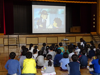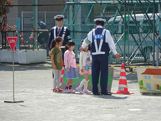 警察の方をお招きして、1年生が安全な道路の歩き方を学びました。