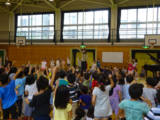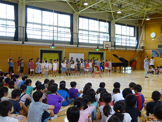 みんなのうたが響く中、今年やってきた先生が順番に台に上がって…