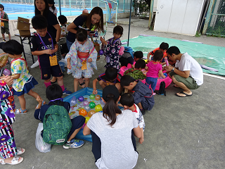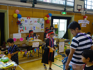 普段と様子の違う学校で、ゲームをしたり、かき氷を食べたり。