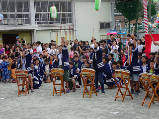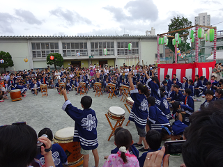 そろいのはっぴを着た5・6年生が、勇ましい太鼓の音色を響かせていました。