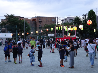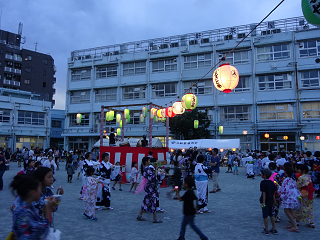 踊りの先生に教えてもらったことを生かして、やぐらの太鼓に合わせて踊りました。