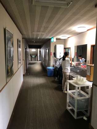 おはようございます。6時の放送とともに、2日目スタートです。検温をして、着替えを済ませ、朝会に向かいます。