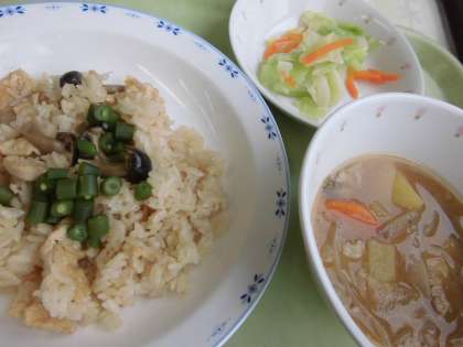 3 炊飯器に米、肉、具材、調味料を入れて炊く。