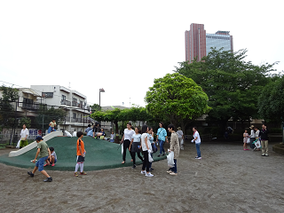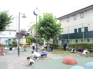 薄曇りの朝、学区内の複数の公園で地域清掃が行われました。雑草を抜いたり、放置されたゴミを拾ったりの作業を続けて、一時間ほどするとすっかりきれいになりました。