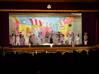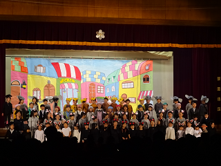 1年生の劇は、「チーズとねずみたち」。チーズが大好きな国で、様々な事件が起こります。いろいろな動物たちも現れて、歌あり、ダンスありのお話を披露しました。