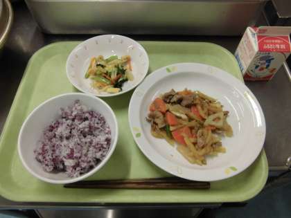 6月の給食目標は《よくかんで食べよう》です。6月4〜10日は〈歯と口の健康週間〉でもあります。動物の歯はどんなものを食べるか違います。人間は様々なものを食べます。歯はその食べ物を細かくかみ砕き、体に栄養を運ぶための大切な働きをします。歯は一生使い続ける体の大切な一部です。いつまでも自分の歯で食べ続けられるように、歯の健康を守り、丈夫にする食生活を心がけましょう。そのひとつに、6月のの給食目標が出ます。このだ液は歯についた食べカスを落としたり、むし歯を防ぐ効果があります。
