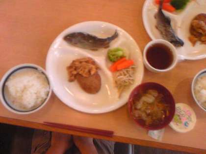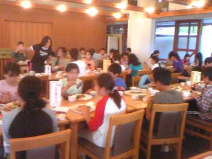 先程のマスも入った夕食です。しっかり食べて、夕食後はキャンプファイヤーです。