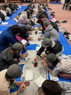 絵付け体験で公民館に来ました。書き終わるまでおしゃべりなしで集中して描き上げました。完成が楽しみです!