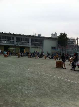 56年生による三茶太鼓から三茶まつりが始まりました。