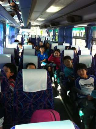 順調にバスは走っています。バスの中では、元気に歌を歌って過ごしています。三芳PAで休憩してまた、ばに乗り出発です。