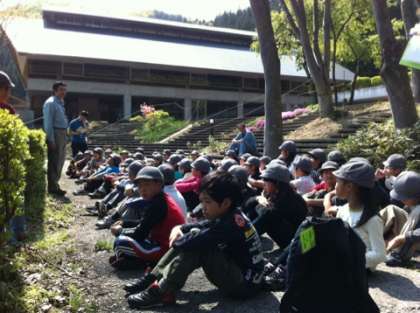 歴史資料館から、40分も歩いてふじやまビレッジ到着、開校式をして宿舎に入りました。