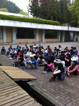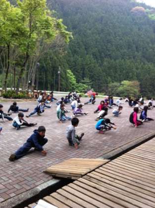 みんな一斉に起き、朝会です。川場は、とても朝は寒く、子ども達「寒い」と言いながら、元気に体操をしました。