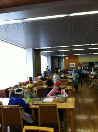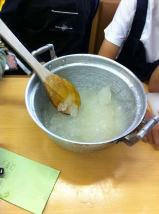 川場の名産品こんにゃく、粉からみんなで協力して作りました。
