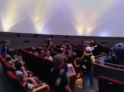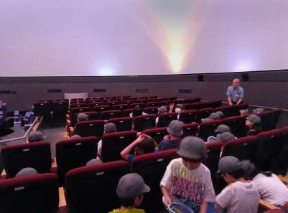 今日は4年生が世田谷区教育会館内にあるプラネタリウム鑑賞に出かけています。学校から約30分かけて歩いてきました。公道の歩き方がとても上手でした。これから星座早見版を活用しながら、ブラネタリウム鑑賞を行います。