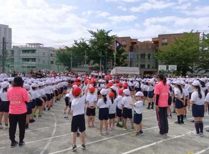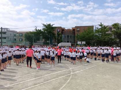 今日は運動会です。開会式が始まりました。暑さも昨日より和らぎ絶好のコンディションです。