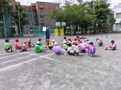 6年2組の体育の様子です。今日からリレーの学習が始まりました。クラス全体のタイム計測を行い、これからバトンパスを中心に技能を高め、クラス全体のタイムを縮めることに挑戦していきます。最初の時間の最後に、バトンゾーンを有効に使ったほうがいい、コースの最内を走るように意識した方がいいなど、次に向けての改善点を出し合いました。みんなで励まし合い、高め合いながら学習を進めています。