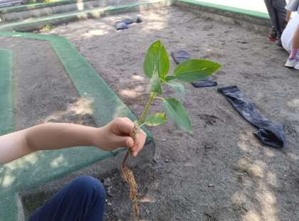 3年生が種から育てたホウセンカを地植えに変える作業を行っていました。大切に育てたホウセンカを優しく持って、お引越しを行いました。これからホウセンカとヒマワリの育ち方を比べていきます。比べるうえでタブレット端末も有効に使えそうです。早速写真におさめている姿も見られました。充実した学習になりそうです。
