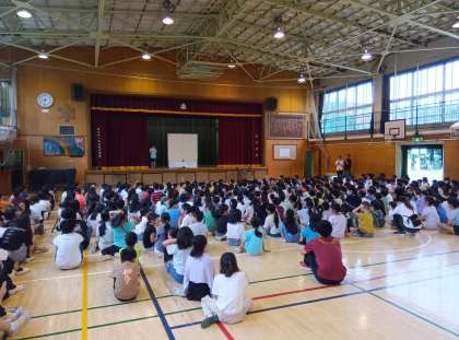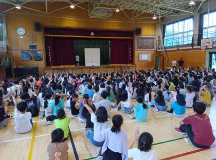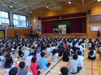 今朝は児童集会がありました。集会委員会が全校児童で楽しめるクイズを考えてくれました。「人数あてクイズ」です。舞台のパーテーションの影に入れ替わり立ち替わり人が入ったり出たりします。最終的にパーテーションの影にいる人数は何人かを当てるクイズです。みんなが楽しく参加しました。短時間で、分かりやすく楽しめる集会をつくりあげた集会委員会の活躍が見事でした。