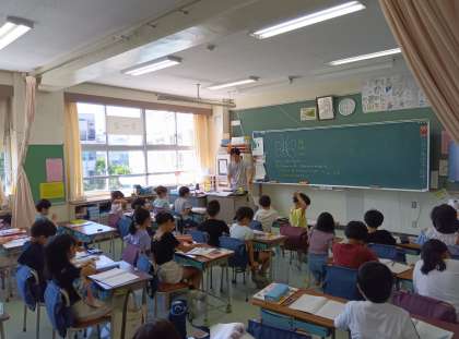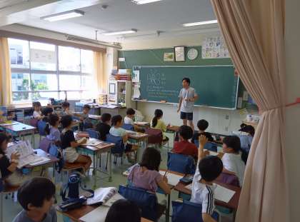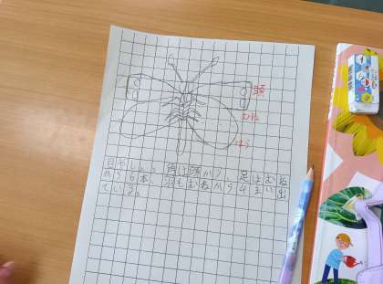 3年生の理科では昆虫のからだのつくりについて学習しています。教室でも実際にモンシロチョウの青虫を飼育しています。今日は映像資料を活用しながら、モンシロチョウのからだのつくりを学んでいきました。頭、胸、腹の3つからできていて、足が6本あって、足は胸から出ています。こういう特徴をもった生き物を「昆虫」ということを学びました。