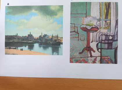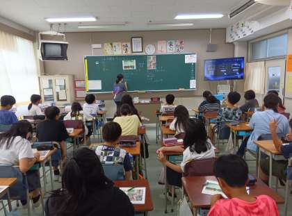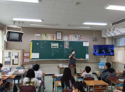 2枚の絵を比べようという課題から学習がスタートしました。左の絵は繊細、リアル、四角が多い。右の絵は丸い、ざっくりしている、にじみがある、色使いが濃く、しっかりしているなどどんどん気付いたことを出し合いました。左の絵は限りなく実際のものと同じように描かれており、右の絵は作者の思いや考えを基に表現している絵であると紹介しました。そして、その後が6年生が取り組む本題です。三軒茶屋小学校の中で自分のお気に入りの場所の絵を描こうと伝えました。様々な思い出、思い入れがある場所を振り返り、その場所を絵にして残すという課題です。見たままの場所を描くということよりも、その場所への思いや印象を表現していきます。どんな作品になるのか楽しみです。