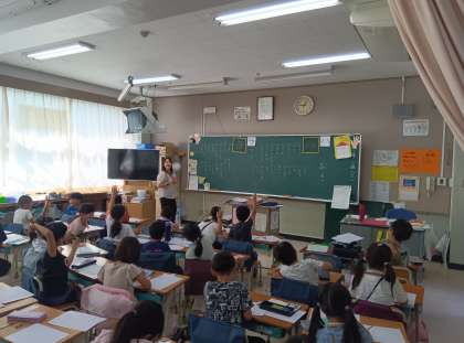 1年生の国語、言葉の学習では片仮名の学習が進んでいます。今日は「ハ」と「ラ」を学びました。その片仮名を使う言葉を身の回りやこれまでの経験から探し、次々に見付けました。「パラリンピックにはどっちも使われてるよ」とみんなを関心させる発見をしている子もいました。