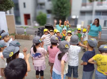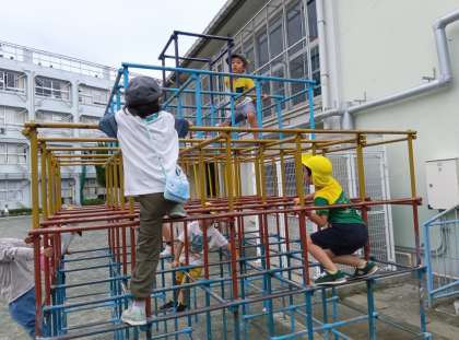 今日は三軒茶屋保育園が散歩の途中で本校に立ち寄ってくれました。三軒茶屋保育園と遊んでくれたのは1年2組のみんなです。校庭を広々と使い、ジャングルジムやこおり鬼、ボール遊びなどをしました。あっという間に過ぎる時間に、「もっと遊びたかったなあ」という声が双方から聞こえました。また会おうという約束をしました。その約束をどんな形で実現させるか、これから計画していくようです。