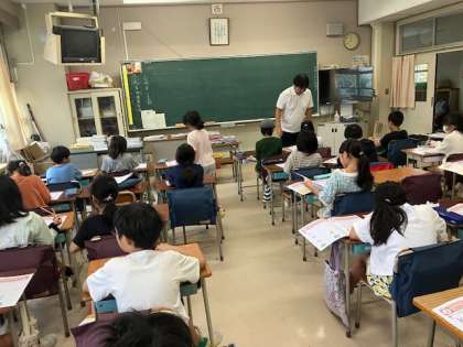 3年生の国語では「ローマ字」の学習が進んでいます。自分の名前に使われるローマ字に注目し、その文字が出てくると子どもたちは喜んでいます。ドリルの字を丁寧になぞる子がたくさんいて、この学習への関心の高さがうかがえました。