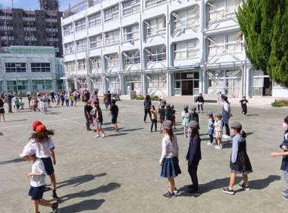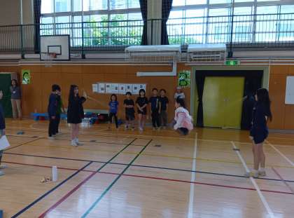 3時間目は縦割り班遊びでした。今日は全班、共通の遊びをします。長縄跳びです。上学年になると巧みに縄を跳ぶことができますが、小さい子たちには難しい技です。班の中を得意な子と経験が少ない子のグループに分けて、それぞれに合った長縄跳びを行いました。経験が少ない子に優しくコツを教える先輩たちの姿が頼もしく映りました。
