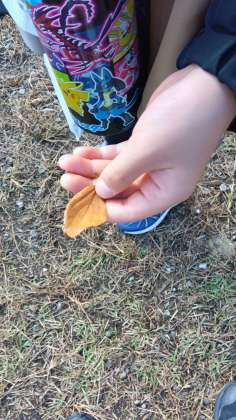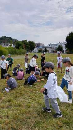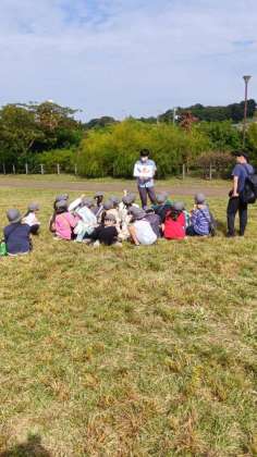 自然体験プログラムは公園のビジターセンターの職員の方のご協力をいただきました。お気に入りの葉っぱを見つけようでは、子どもたちが見つけた葉の名前を全て答えてくれました!さすがです!