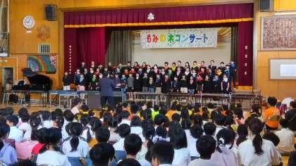 各学年の舞台、トップバッターは3年生です。重唱「おうい海!」合奏「ビンクスの酒」を披露しました。練習の成果を発揮できたようです。特に重唱、おうい海!」高音を響かせた美しい歌声でした。
