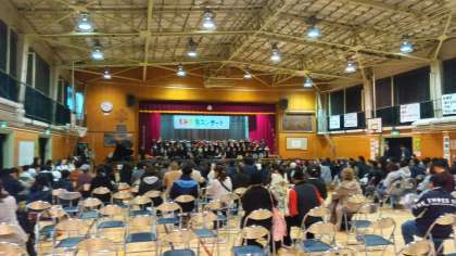 いよいよもみの?木コンサート保護者鑑賞日が始まります。PTAの皆様に受付等のご協力をいただいています。ありがとうございます。トップバッターの3年生の「はじめようコンサート」の斉唱とともにもみの?木コンサート開演です。