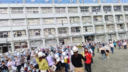 月に一度の避難訓練を実施しました。緊急地震速報を聞いての一次避難、揺れが収まり倒壊等の恐れを避けるための校庭への二次避難を行いました。速やかに避難し、全員の無事を短時間で確認することができました。