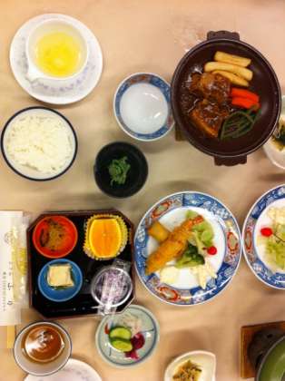 お風呂でさっぱりしての夕食です。おいしくいただきました。