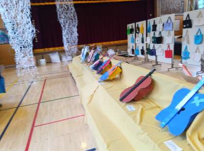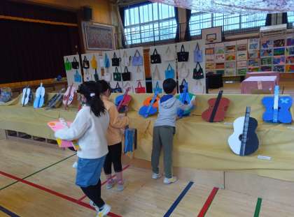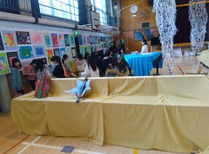 今日は各学年が立体作品を体育館に搬入しました。平面作品や共同作品はほぼ先週のうちに展示することができました。一人一人、自分の立体作品を大事に抱え、展示台に飾っていきました。正面から見える作品の角度をいろいろ試している子もいました。たくさんの人に見てもらえることを喜び、楽しみにしています。