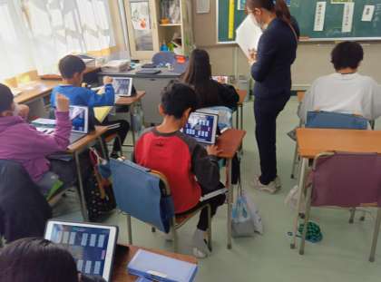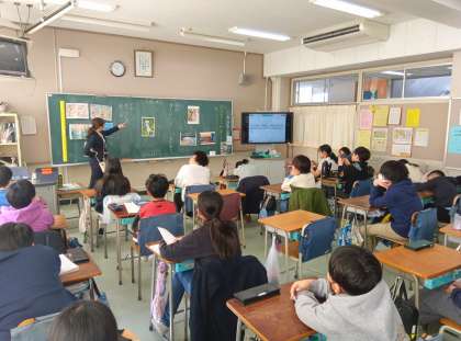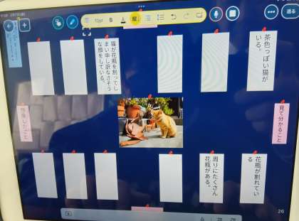5年生の国語「言葉でスケッチ」では、1枚の写真から事実や想像したことを読み取り、メモにして写真の情景をより豊かにしていく活動を行いました。写真は1場面の切り取りですが、被写体の表情や周りの様子からその前後の情景まで想像し、ストーリーにしている子もいました。事実からその背景を想像する力や、事実と感想とを区別して分析する力につながる学習をしました。