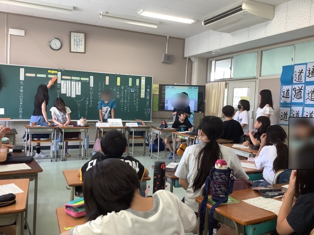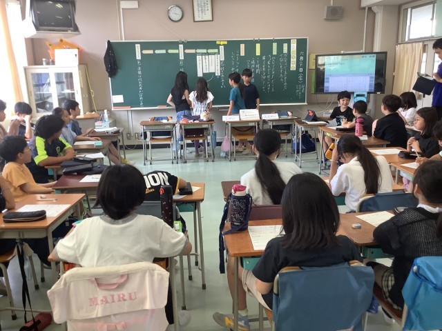 5年生の学級会の様子です。5年2組では毎日学級のめあてを設定し、そのめあてを達成できるとビー玉貯金が貯まっていくという取組をしています。1学期間でどうやら貯金箱がビー玉でいっぱいになったようです。貯金箱がいっぱいになったご褒美のイベントを学級会で話し合っていました。司会グループが進行し、担任は見守っています。子どもたち自身で学級会を進められるようにすることが大切です。ビー玉貯金の達成記念のイベントはみんなの仲をさらに深めることを目的に実施するようです。内容・役割分担など目的が達せられるよう、話し合って決めたことを、みんなで力を合わせて実現します。