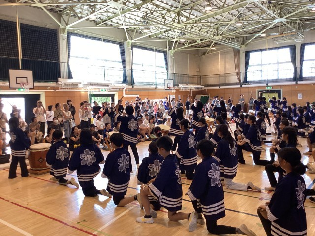 本校では毎年6年生と5年生が師弟関係を結んで、伝統の三茶太鼓を受け継いでいます。