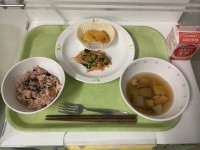 今日の献立・ごはん・牛乳・青菜入り手作りふりかけ・魚の照り焼き・具だくさんみそ汁...