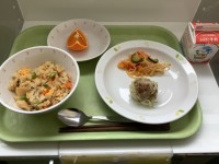 【今日の献立】・チャーハン・牛乳・変わりしゅうまい・にんじんドレッシングサラダ・...