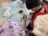 お茶摘みに行ってきた3年生は、お茶の葉の観察をしました。虫眼鏡を使って、葉の模様...