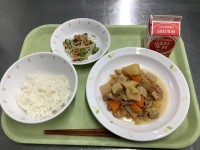 【今日の献立】・ごはん・牛乳・豚肉と大根のうま煮・野菜とお揚げのおひたし