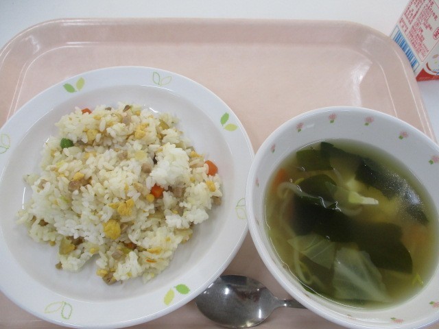 チャーハン・野菜たっぷりわかめスープ・牛乳