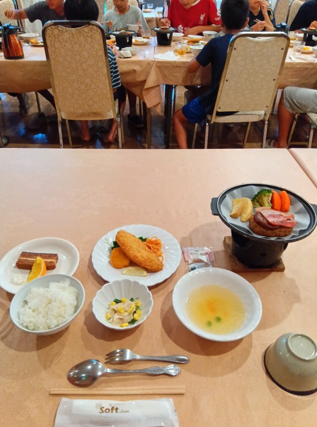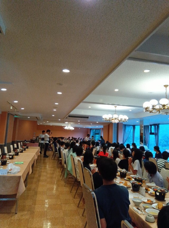 風和里の二日目の夕食です。ご飯のおかわりをする人が続出。お腹いっぱい食べました。