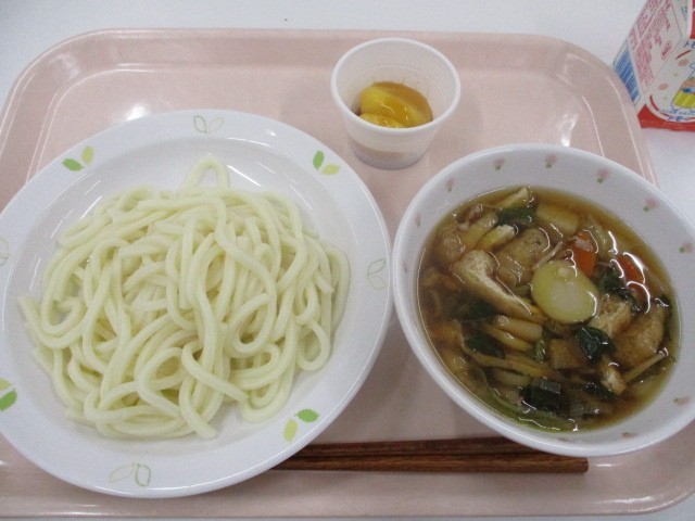肉うどんつけめん(お月見バージョン)・お月見団子・牛乳