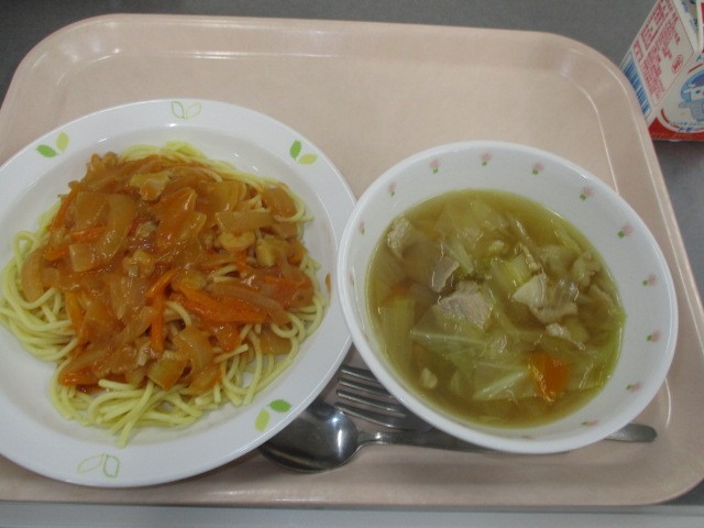 スパゲッティイタリアーノ・白いんげん豆の田舎風スープ・牛乳