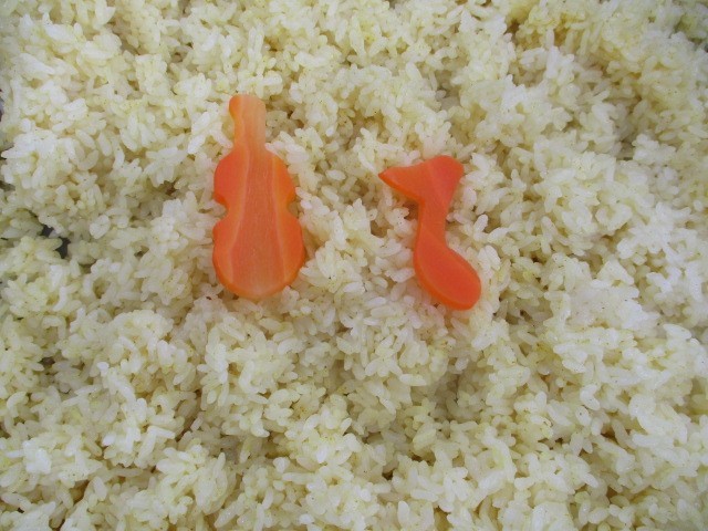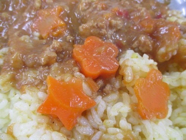 今日は 音楽会特別給食です。 「華 みんなで音を咲かせよう」から にんじんでかわいい花の形や