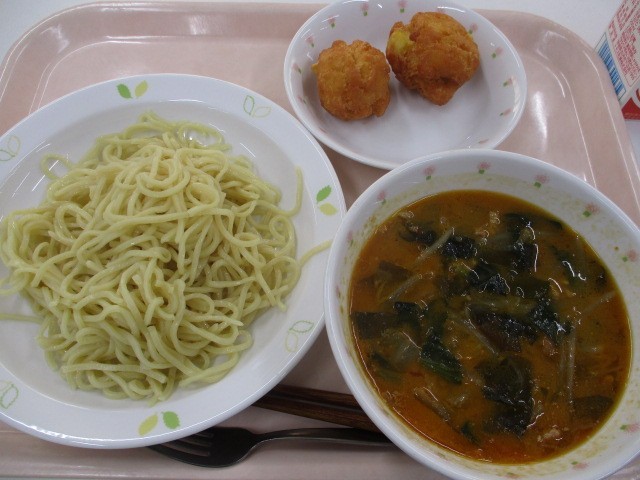 みそラーメン(つけめん)・さつまいものドーナッツ・牛乳