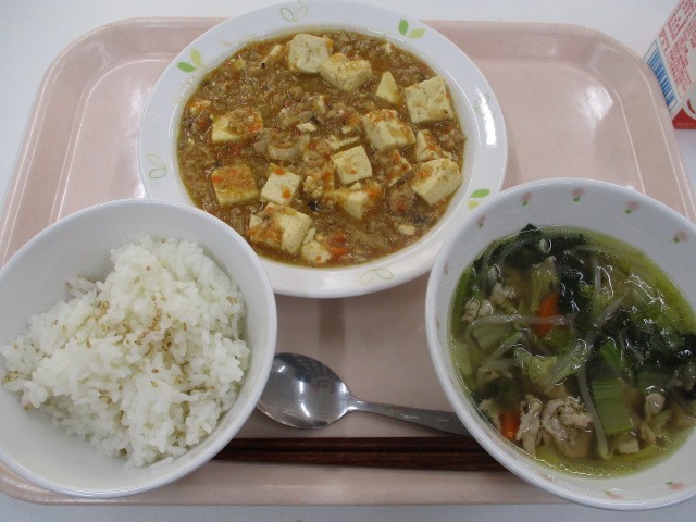 ごまごはん・マーボー豆腐・中華風スープ・牛乳
