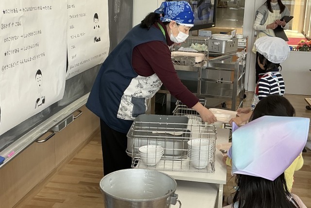「初めての給食に向けて」…1年生は来週から給食が始まります。給食が始まる前に配膳の仕方、食事のいただき方、下膳の仕方などを体験を通して学びました。瀬田小の給食はとても美味しいですよ。たくさん食べて丈夫な体をつくりましょう!
