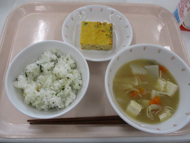 わかめとじゃこのごはん・たまごやき・根菜のみそしる・牛乳